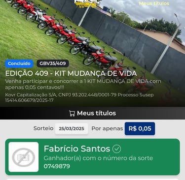 Participar dos sorteios patrocinados pela gêmeos brasil me deu esperança e apoio financeiro em momentos difíceis.